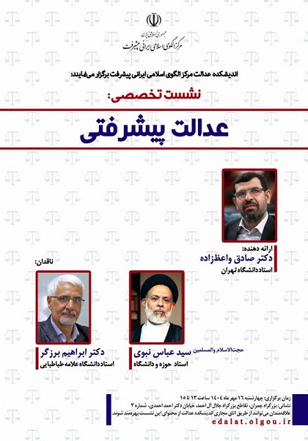 اندیشکده عدالت الگوی اسلامی ایرانی پیشرفت نشستی تخصصی با عنوان"عدالت پیشرفتی" برگزار می‌کند.