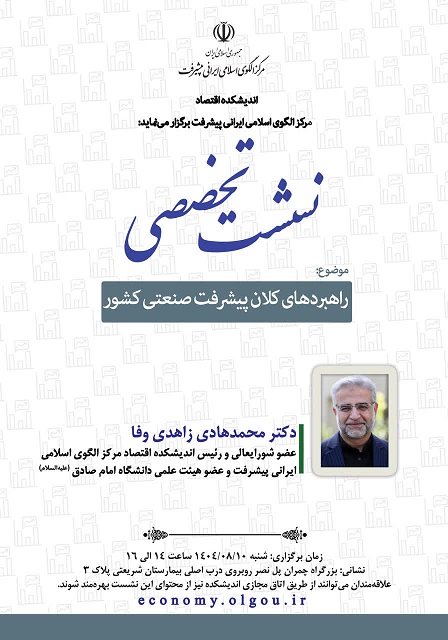 اندیشکده اقتصاد الگوی اسلامی ایرانی پیشرفت نشست تخصصی با عنوان "راهبردهای کلان پیشرفت صنعتی کشور" برگزار میکند.