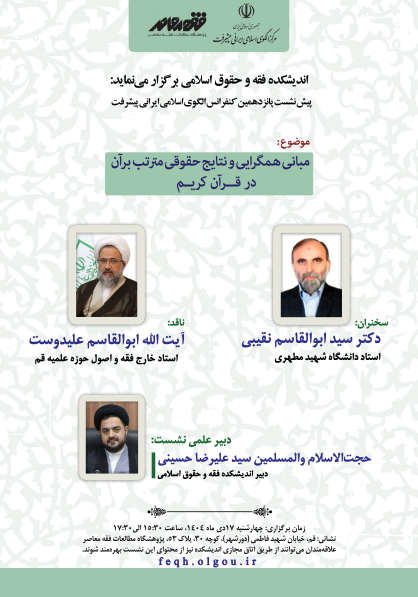 اندیشکده فقه و حقوق اسلامی، نشست علمی «مبانی همگرایی و نتایج حقوقی مترتب بر آن در قرآن کریم» را روز چهارشنبه ۱۷ دیماه بهعنوان پیشنشست پانزدهمین کنفرانس مرکز برگزار میکند.